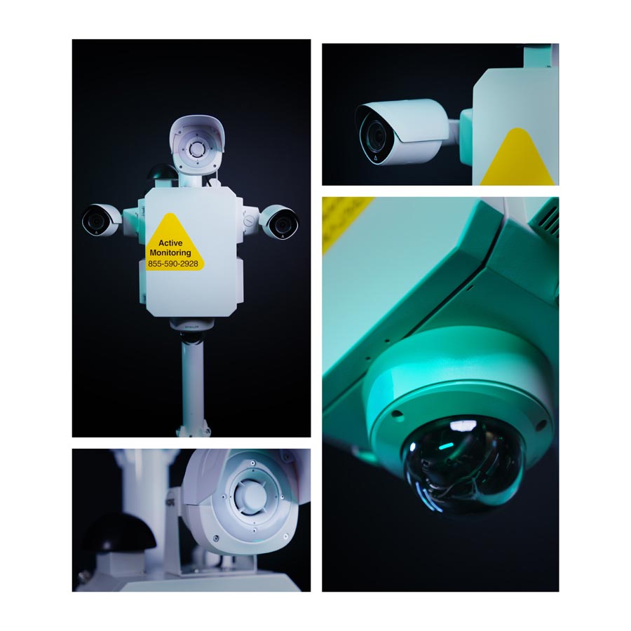Featuring up to 295′ detection range per camera, Cloud VMS with 30-day archiving, talk-down + strobe escalation, a 48VDC internal system with a standard 120VAC plug, QR onboarding for faster installs, lighter transport, reinforced housing — and solar-ready.